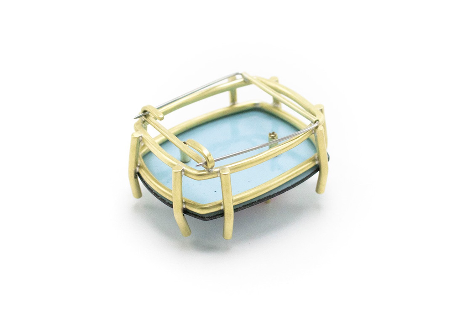 The materials themselves—metal, enamel, and laser-engraved marks—become a language for tending to this complicated state. I lean into color, play, and tactility as a counterweight to the heaviness of uncertainty. Each piece is a deliberate act of re-centering, a small wearable site where permeability, resilience, and doubt coexist.