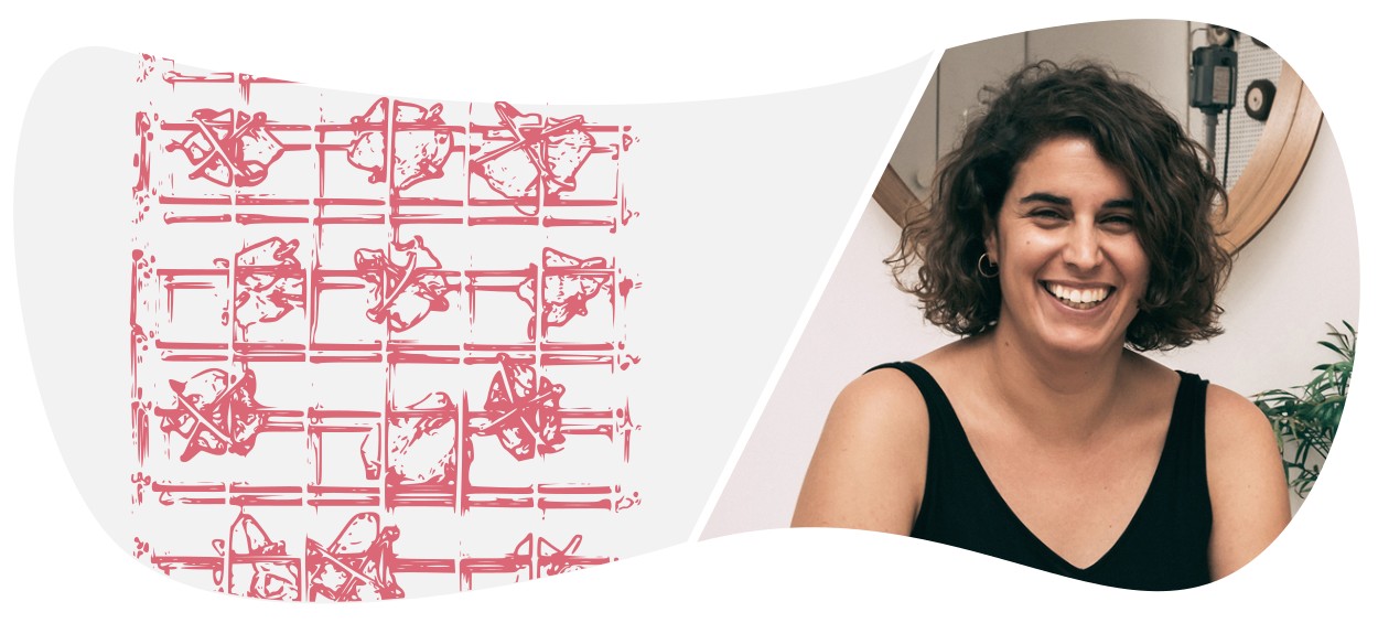The artworks feature red gravel stones arranged on a mesh net facing inwards. These stones were sourced from the area of Al-Kunayyisa, an Arab village that was occupied and ethnically cleansed in 1948. Today, the village’s ruins are difficult to locate, as they are surrounded by an industrial area.