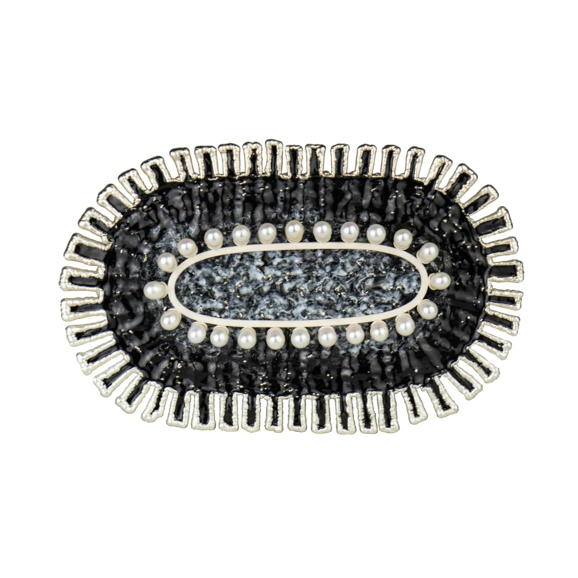 FRAGILITYIsabelle BusnelFranceThis work looks at fragility through two brooches made from broken jewellery found in flea markets. Each piece is partly lost and incomplete, set in soft silicone and stitched with light punch needle embroidery. The pale blue and pink...