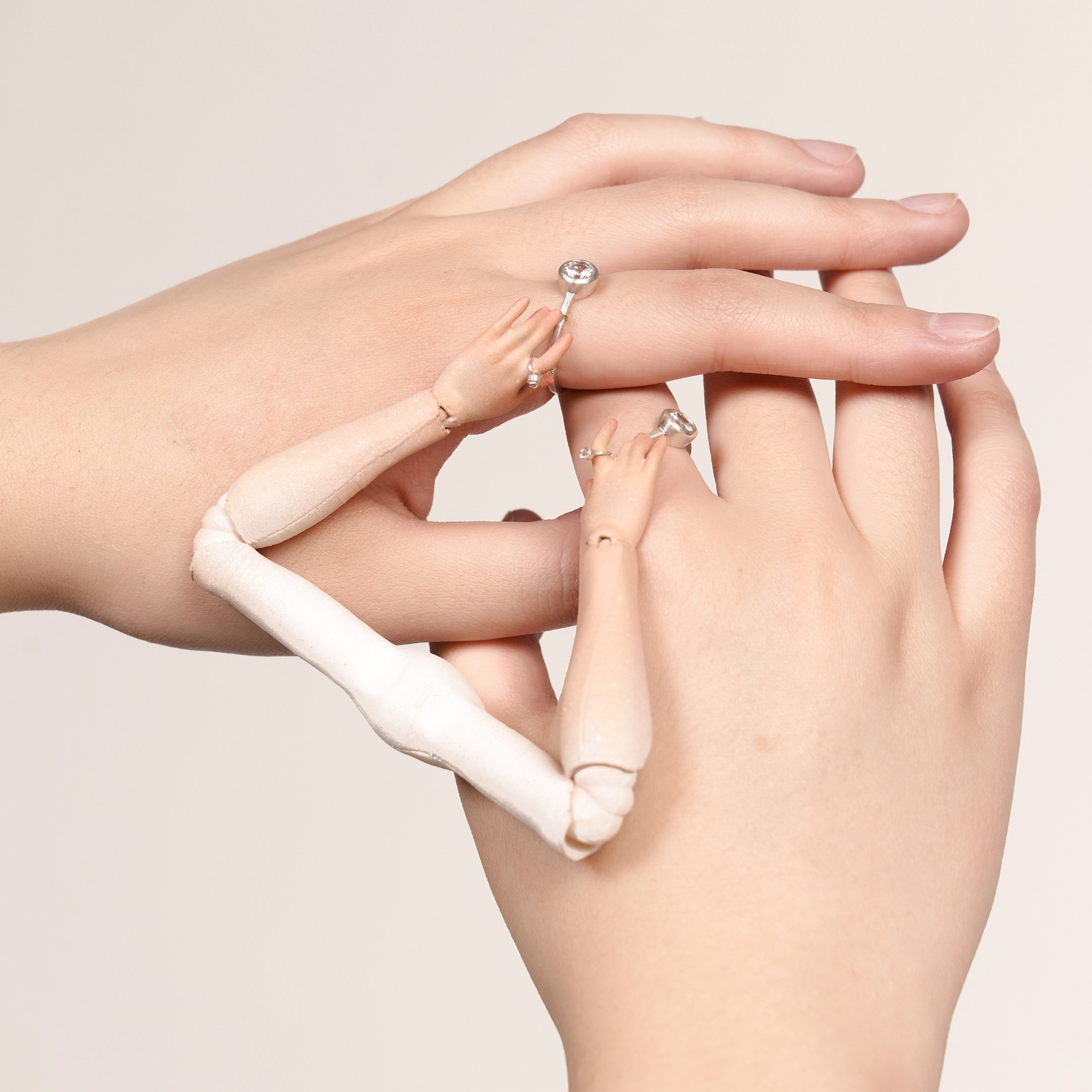 Inspired by the subculture of doll-keeping, I explore how attachment to dolls can compensate for loneliness, offer alternative forms of belonging, and transform inanimate objects into vessels of emotion, memory, and identity. Employing jewelry as a medium to express this attachment, my works reflect a desire for connection in an increasingly detached world.